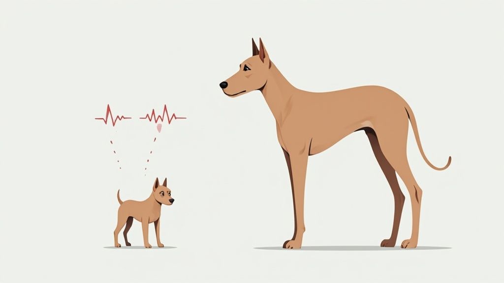 This variation is totally normal and drives home a key point: there's no single "correct" heart rate for all dogs. It’s a dynamic range that shifts based on what they're doing. A heart that's racing during a game of fetch will naturally slow to a gentle patter during a nap. Getting a feel for these shifts is the first step toward really understanding your dog's physical state.