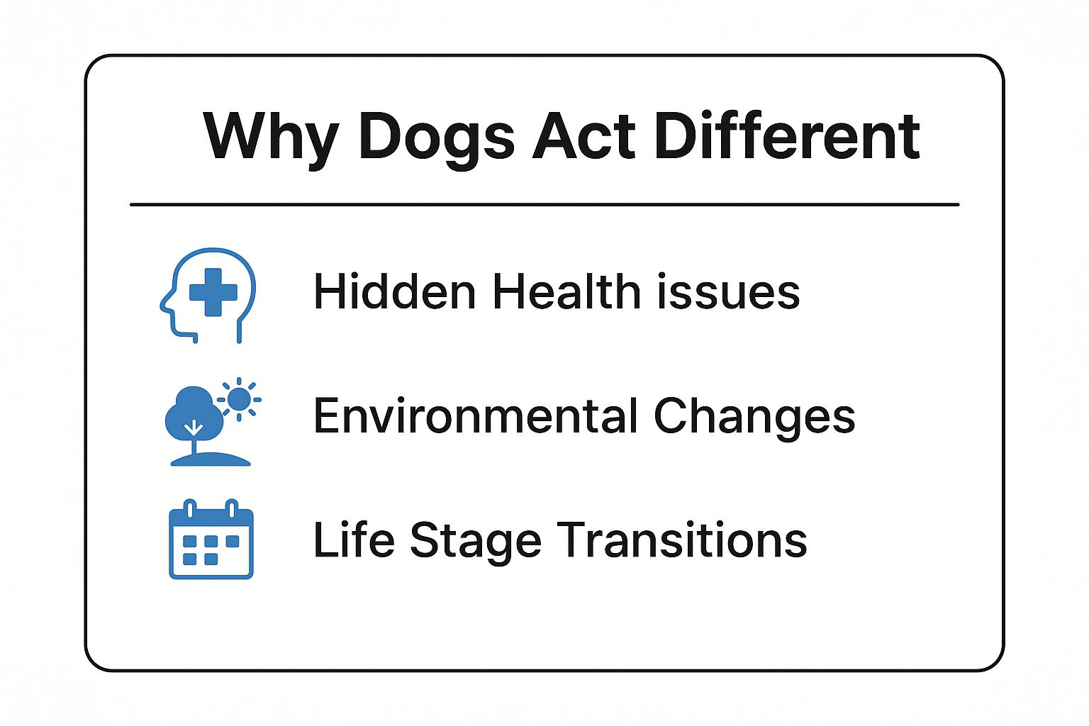 When you're trying to figure out what's going on with your dog, it helps to have a quick reference. This table breaks down the most common triggers for sudden behavioral shifts.