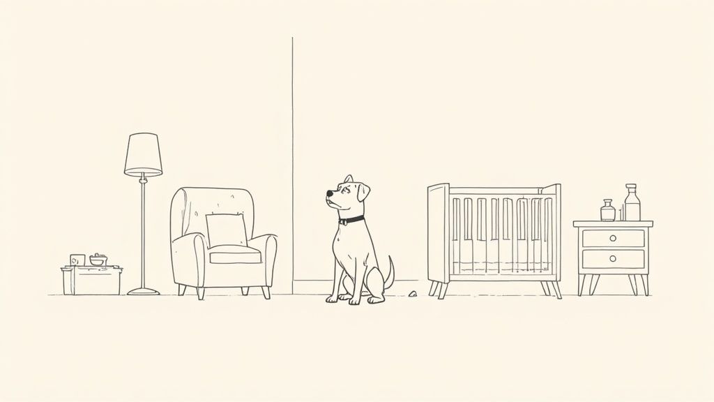 A change in your work schedule: If you suddenly start working from home or, conversely, head back to the office, their daily rhythm is completely disrupted. This is a very common reason we see anxieties like separation anxiety develop. For owners struggling with this, our guide on how to reduce dog separation anxiety has some practical tips.