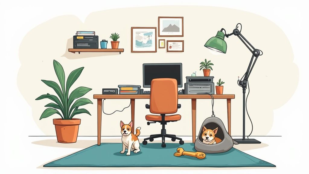 You don't need a huge, dedicated office to successfully work from home with your pet. The real secret is being smart with the space you already have. The goal is to carve out a spot where you can actually focus on your work while your pet can chill out safely and comfortably, without causing constant chaos.